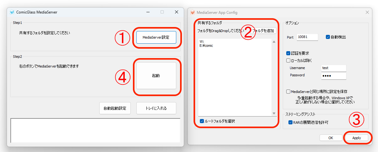 Using MediaServer is simple—just select the folder you want ComicGlass to access and press the “Start” button!